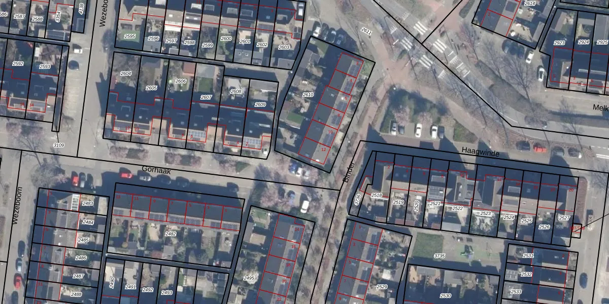 Het perceel waarop Binder 12 staat heeft een oppervlakte van 890 m². Dit is een groot perceel. De perceeloppervlakte wordt geregistreerd door het Kadaster. Gedetailleerde informatie over de maten van dit perceel kunt u vinden in het rapport Kadastrale kaart met maatvoering van Binder 12.