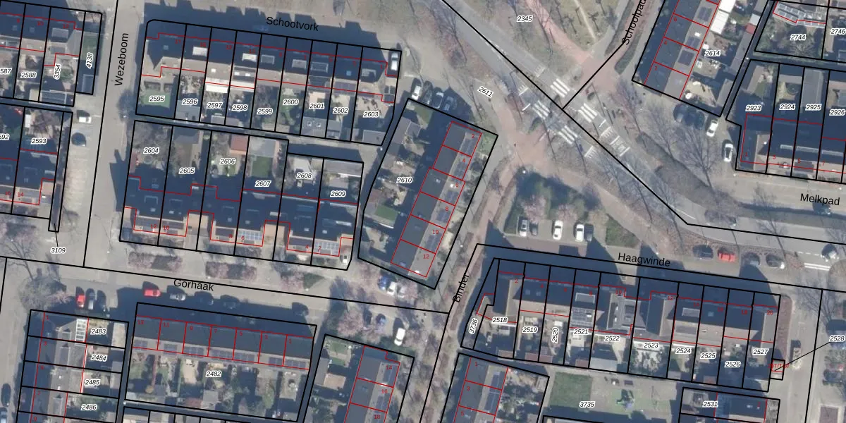 Het perceel waarop Binder 8 staat heeft een oppervlakte van 890 m². Dit is een groot perceel. De perceeloppervlakte wordt geregistreerd door het Kadaster. Gedetailleerde informatie over de maten van dit perceel kunt u vinden in het rapport Kadastrale kaart met maatvoering van Binder 8.