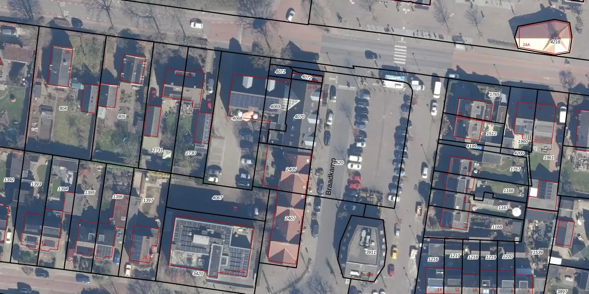Het perceel waarop Braadkamp 3 staat heeft een oppervlakte van 268 m². Dit is een middelgroot perceel. De perceeloppervlakte wordt geregistreerd door het Kadaster. Gedetailleerde informatie over de maten van dit perceel kunt u vinden in het rapport Kadastrale kaart met maatvoering van Braadkamp 3.