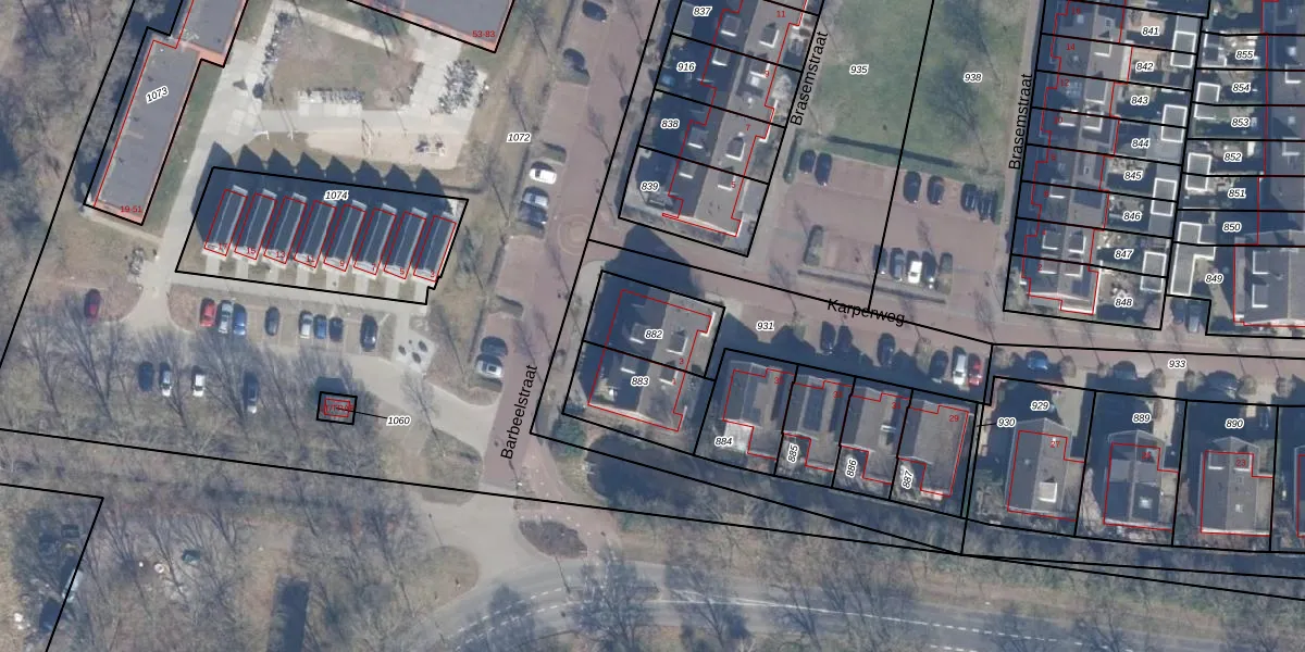 Gebruik de zoekbalk of klik op een perceel voor informatie over de adressen binnen dit perceel.