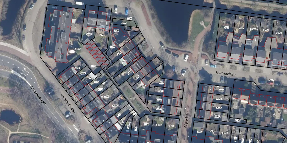 Het perceel waarop Eemlustlaan 41 staat heeft een oppervlakte van 163 m². Dit is een middelgroot perceel. De perceeloppervlakte wordt geregistreerd door het Kadaster. Gedetailleerde informatie over de maten van dit perceel kunt u vinden in het rapport Kadastrale kaart met maatvoering van Eemlustlaan 41.