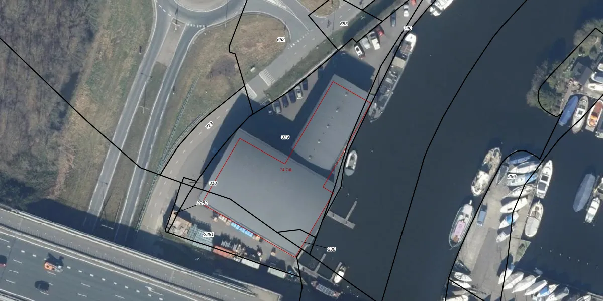 Het perceel waarop Eemweg 74-B staat heeft een oppervlakte van 2175 m². Dit is een zeer groot perceel. De perceeloppervlakte wordt geregistreerd door het Kadaster. Gedetailleerde informatie over de maten van dit perceel kunt u vinden in het rapport Kadastrale kaart met maatvoering van Eemweg 74-B.