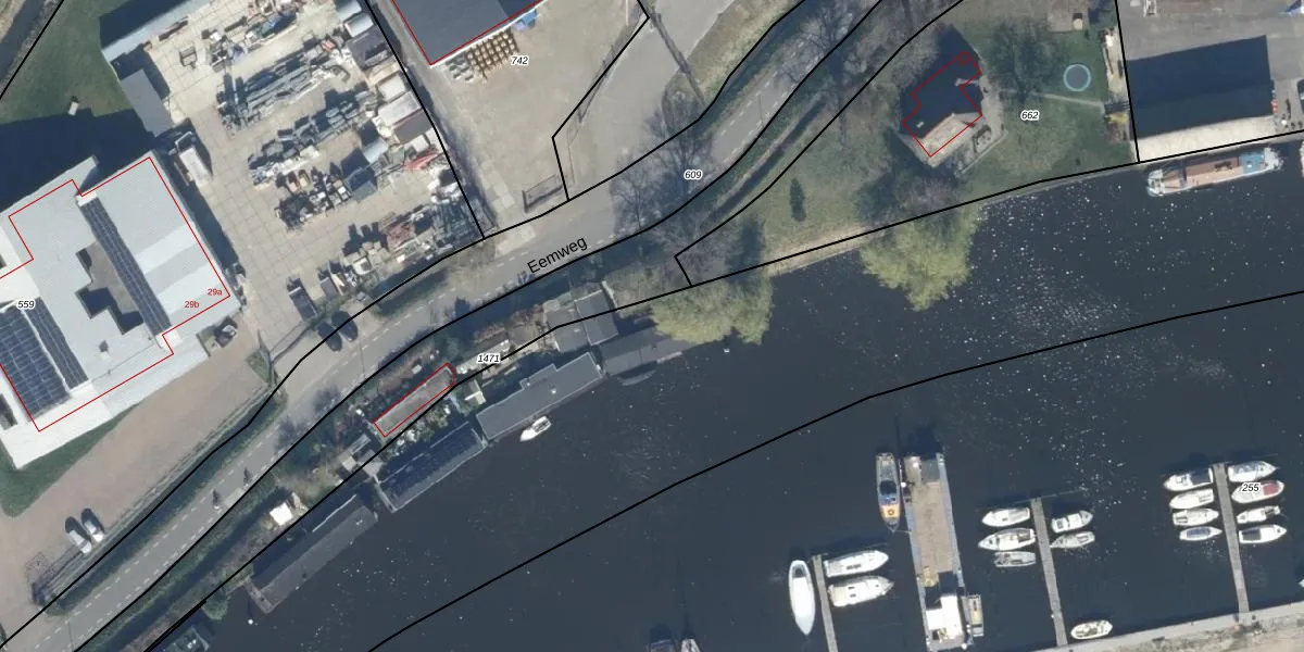 Het perceel waarop Eemweg 76-WS1 staat heeft een oppervlakte van 2,3 ha. Dit is een zeer groot perceel. De perceeloppervlakte wordt geregistreerd door het Kadaster. Gedetailleerde informatie over de maten van dit perceel kunt u vinden in het rapport Kadastrale kaart met maatvoering van Eemweg 76-WS1.
