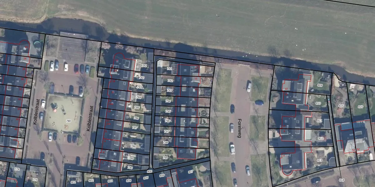 Het perceel waarop Forelweg 13 staat heeft een oppervlakte van 159 m². Dit is een middelgroot perceel. De perceeloppervlakte wordt geregistreerd door het Kadaster. Gedetailleerde informatie over de maten van dit perceel kunt u vinden in het rapport Kadastrale kaart met maatvoering van Forelweg 13.