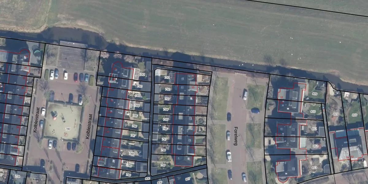 Het perceel waarop Forelweg 15 staat heeft een oppervlakte van 171 m². Dit is een middelgroot perceel. De perceeloppervlakte wordt geregistreerd door het Kadaster. Gedetailleerde informatie over de maten van dit perceel kunt u vinden in het rapport Kadastrale kaart met maatvoering van Forelweg 15.