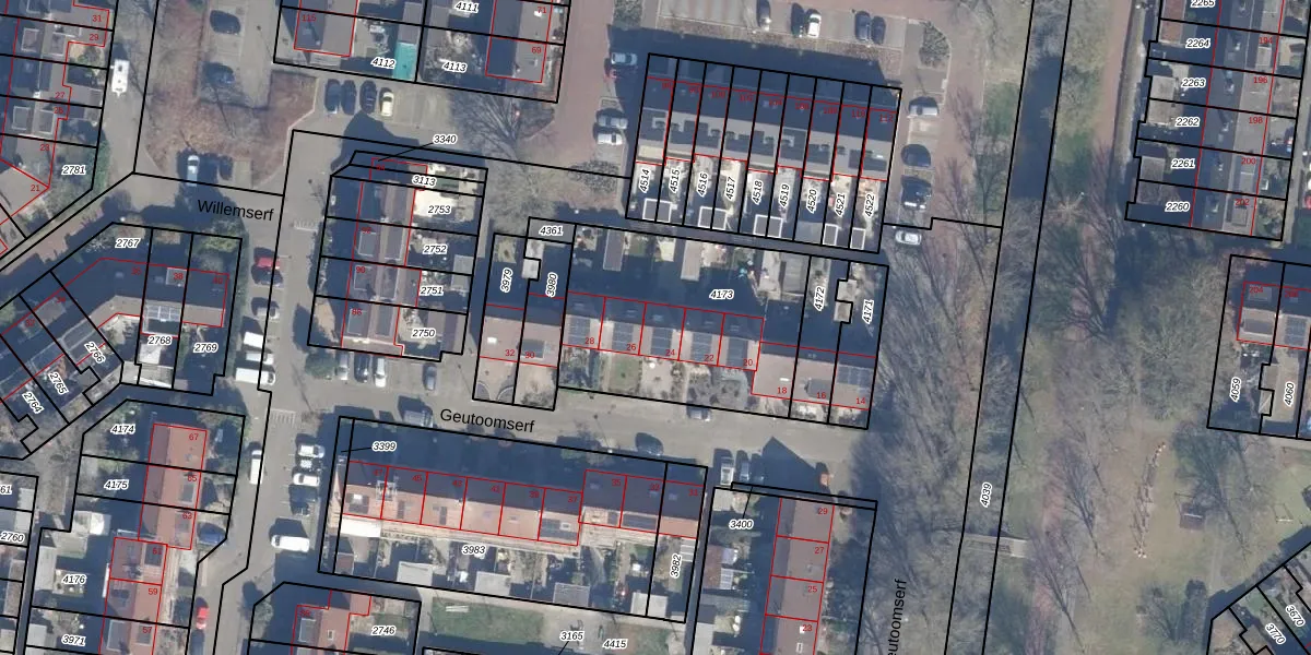 Het perceel waarop Geutoomserf 24 staat heeft een oppervlakte van 906 m². Dit is een groot perceel. De perceeloppervlakte wordt geregistreerd door het Kadaster. Gedetailleerde informatie over de maten van dit perceel kunt u vinden in het rapport Kadastrale kaart met maatvoering van Geutoomserf 24.