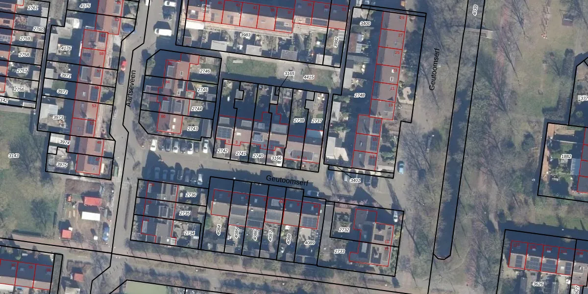Het perceel waarop Geutoomserf 9 staat heeft een oppervlakte van 163 m². Dit is een middelgroot perceel. De perceeloppervlakte wordt geregistreerd door het Kadaster. Gedetailleerde informatie over de maten van dit perceel kunt u vinden in het rapport Kadastrale kaart met maatvoering van Geutoomserf 9.