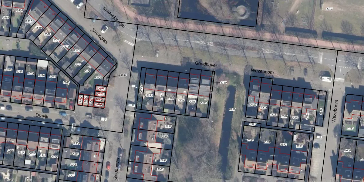 Gebruik de zoekbalk of klik op een perceel voor informatie over de adressen binnen dit perceel.