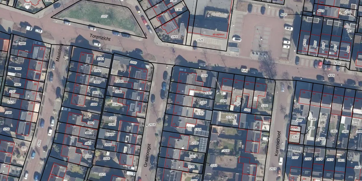 Het perceel waarop Graanoogst 16 staat heeft een oppervlakte van 152 m². Dit is een middelgroot perceel. De perceeloppervlakte wordt geregistreerd door het Kadaster. Gedetailleerde informatie over de maten van dit perceel kunt u vinden in het rapport Kadastrale kaart met maatvoering van Graanoogst 16.