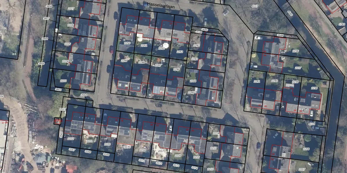 Het perceel waarop Hasselaarlaan 35 staat heeft een oppervlakte van 251 m². Dit is een middelgroot perceel. De perceeloppervlakte wordt geregistreerd door het Kadaster. Gedetailleerde informatie over de maten van dit perceel kunt u vinden in het rapport Kadastrale kaart met maatvoering van Hasselaarlaan 35.