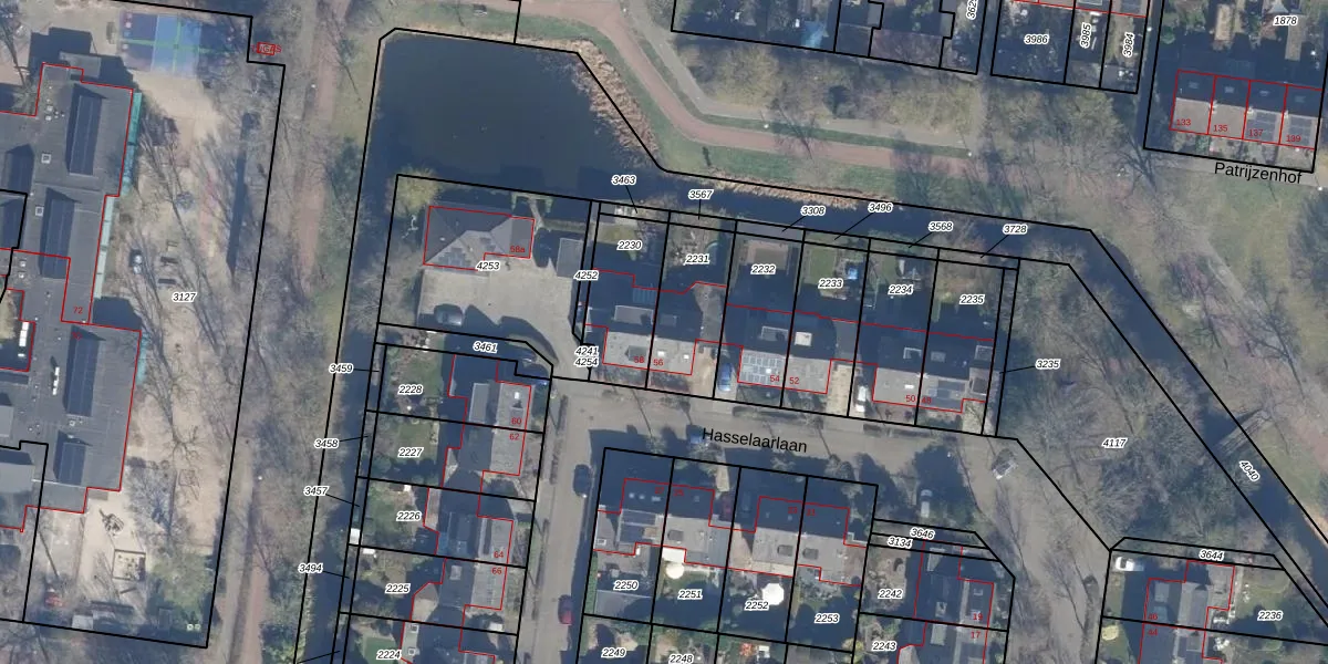 Het perceel waarop Hasselaarlaan 56 staat heeft een oppervlakte van 258 m². Dit is een middelgroot perceel. De perceeloppervlakte wordt geregistreerd door het Kadaster. Gedetailleerde informatie over de maten van dit perceel kunt u vinden in het rapport Kadastrale kaart met maatvoering van Hasselaarlaan 56.