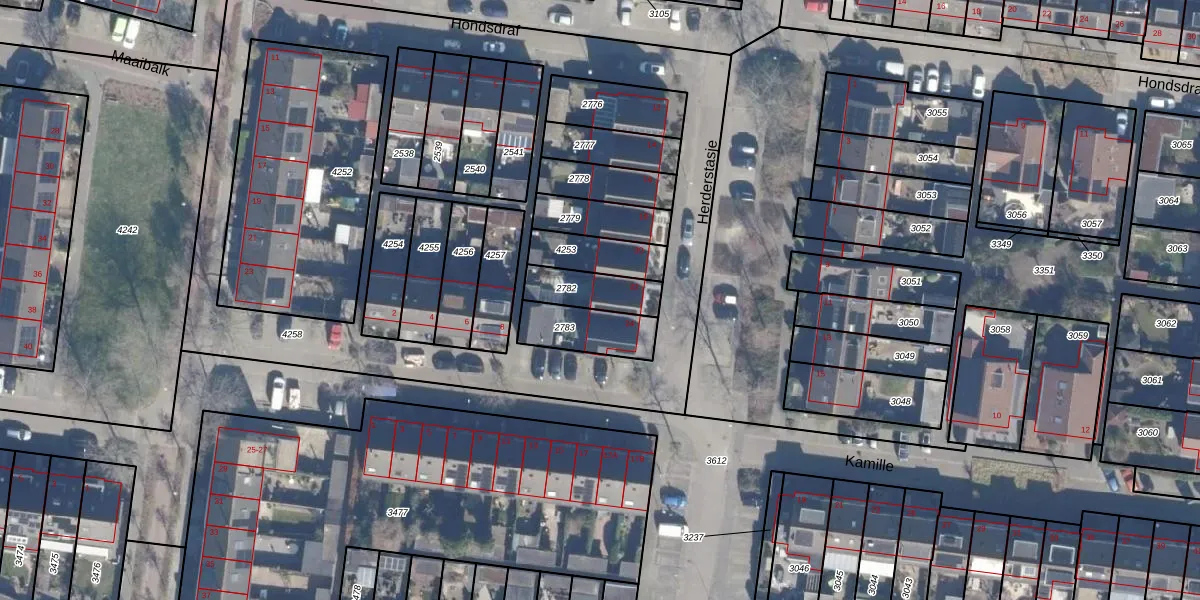 Gebruik de zoekbalk of klik op een perceel voor informatie over de adressen binnen dit perceel.