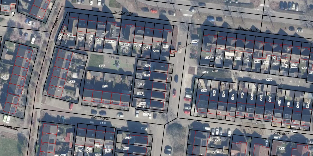 Gebruik de zoekbalk of klik op een perceel voor informatie over de adressen binnen dit perceel.