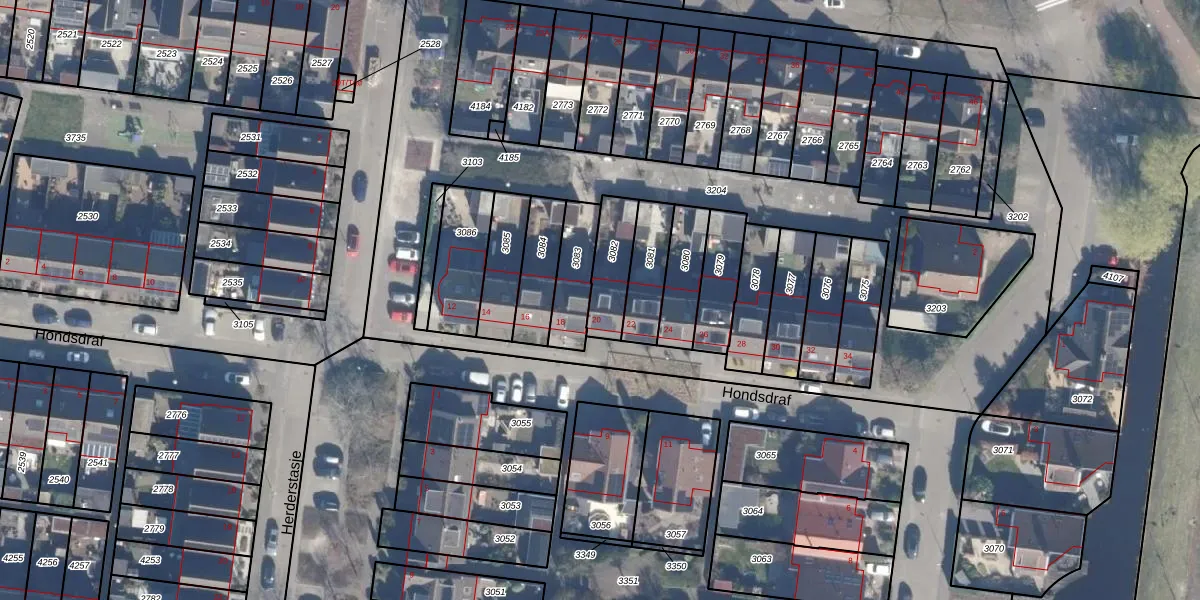 Gebruik de zoekbalk of klik op een perceel voor informatie over de adressen binnen dit perceel.
