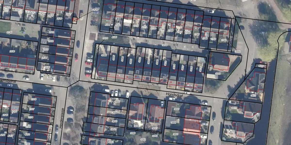 Gebruik de zoekbalk of klik op een perceel voor informatie over de adressen binnen dit perceel.