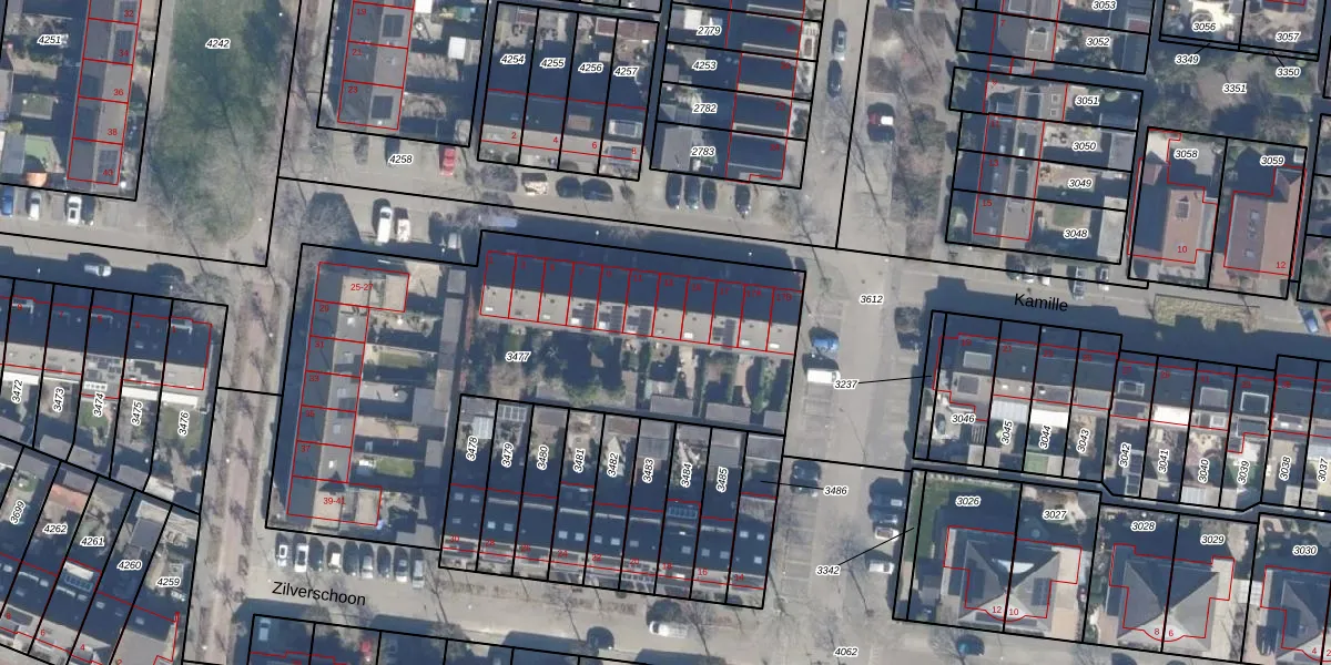 Het perceel waarop Kamille 13 staat heeft een oppervlakte van 2363 m². Dit is een zeer groot perceel. De perceeloppervlakte wordt geregistreerd door het Kadaster. Gedetailleerde informatie over de maten van dit perceel kunt u vinden in het rapport Kadastrale kaart met maatvoering van Kamille 13.
