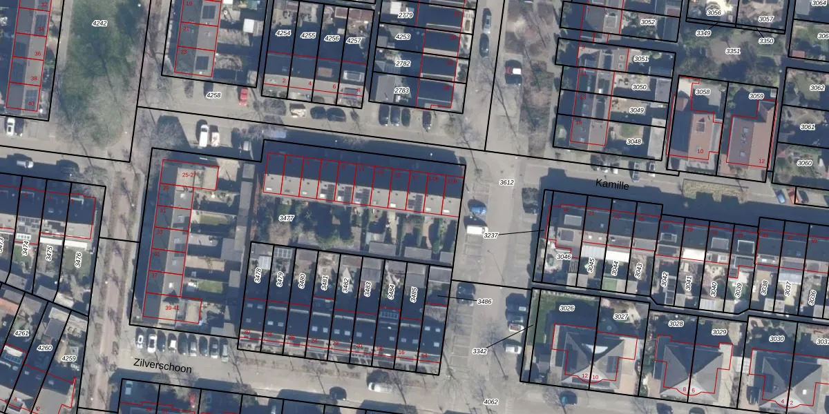 Het perceel waarop Kamille 17 staat heeft een oppervlakte van 2363 m². Dit is een zeer groot perceel. De perceeloppervlakte wordt geregistreerd door het Kadaster. Gedetailleerde informatie over de maten van dit perceel kunt u vinden in het rapport Kadastrale kaart met maatvoering van Kamille 17.