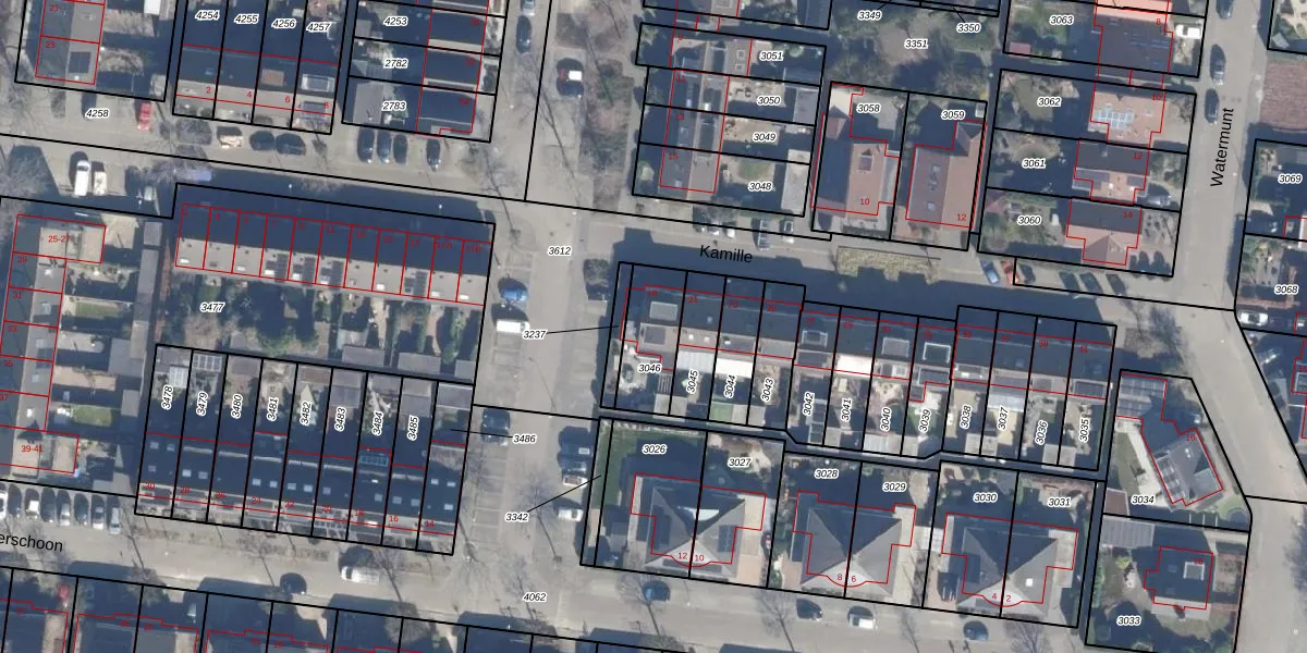Het perceel waarop Kamille 19 staat heeft een oppervlakte van 187 m². Dit is een middelgroot perceel. De perceeloppervlakte wordt geregistreerd door het Kadaster. Gedetailleerde informatie over de maten van dit perceel kunt u vinden in het rapport Kadastrale kaart met maatvoering van Kamille 19.