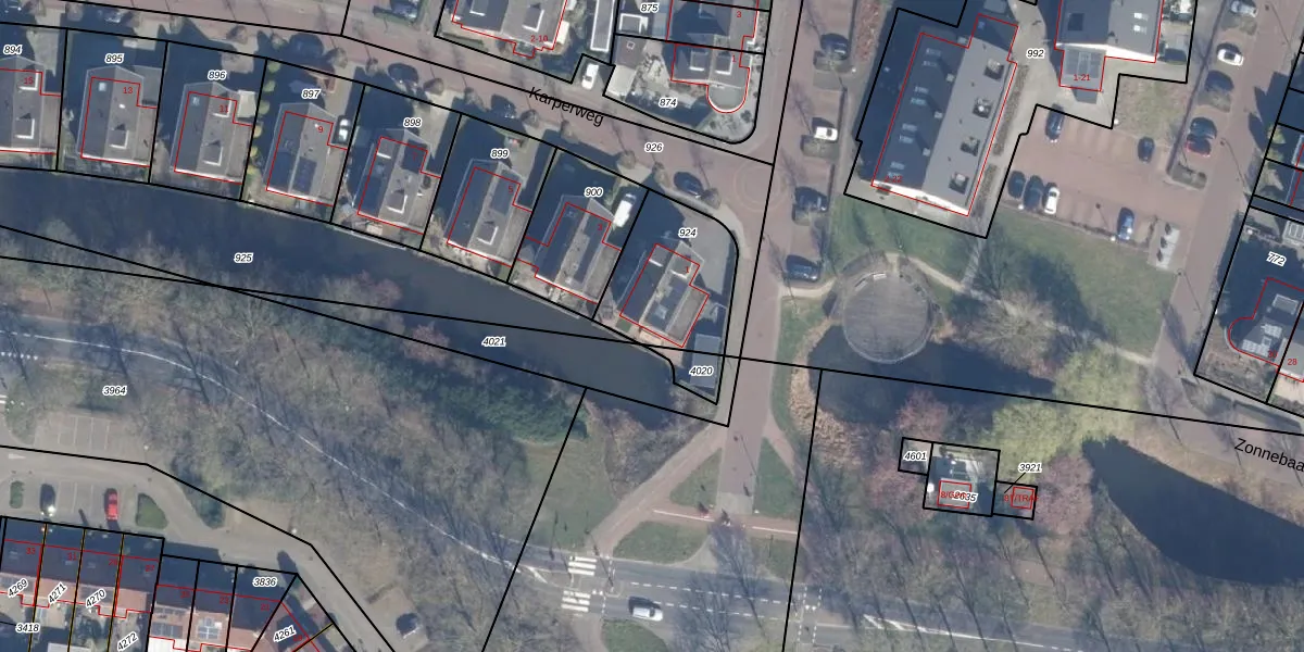 Gebruik de zoekbalk of klik op een perceel voor informatie over de adressen binnen dit perceel.