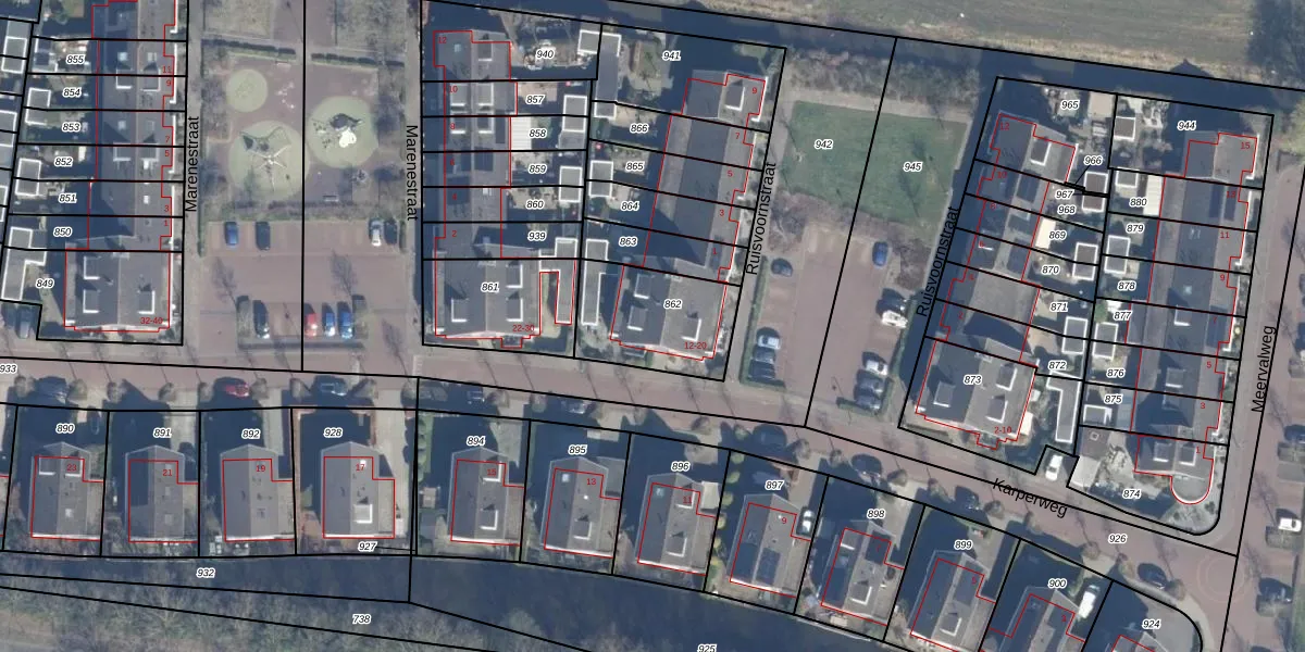 Het perceel waarop Karperweg 14 staat heeft een oppervlakte van 363 m². Dit is een groot perceel. De perceeloppervlakte wordt geregistreerd door het Kadaster. Gedetailleerde informatie over de maten van dit perceel kunt u vinden in het rapport Kadastrale kaart met maatvoering van Karperweg 14.