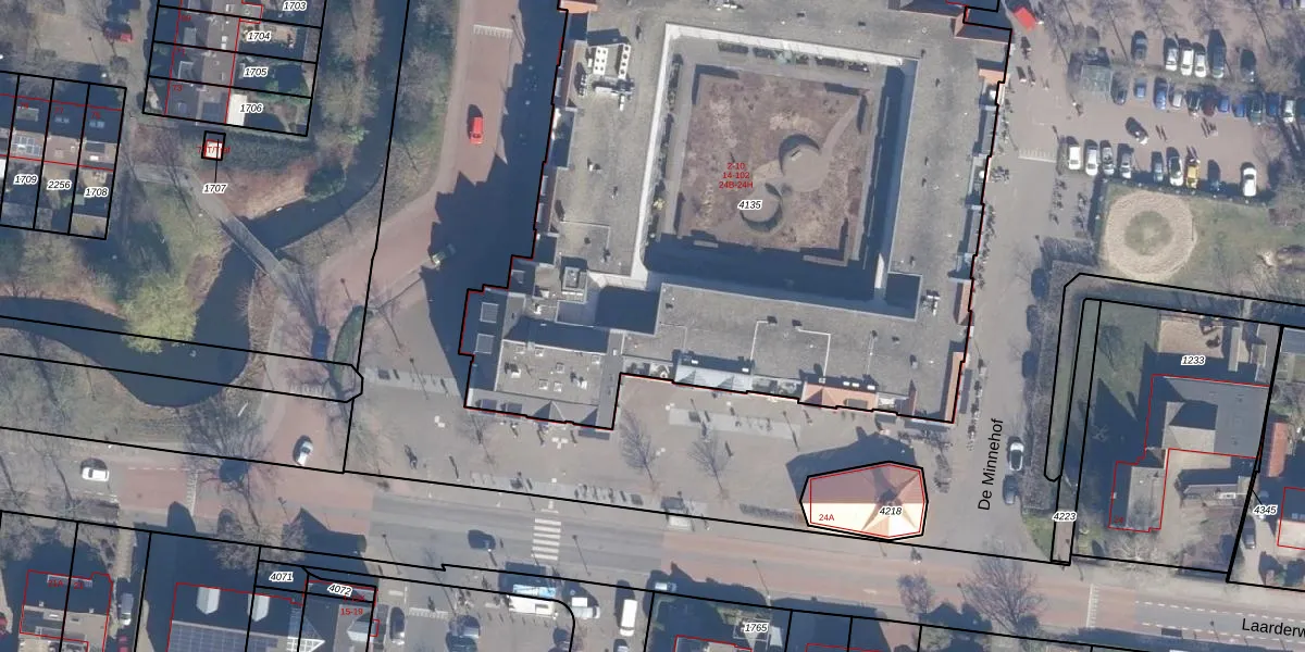 Laarderweg 24-F is gelegen op kadastraal perceel ENS00A4135. Deze kadastrale aanduiding is uniek en wordt gebruikt door het Kadaster om eigendomsrechten en andere zakelijke rechten vast te leggen. Het perceel maakt onderdeel uit van de kadastrale gemeente Eemnes.