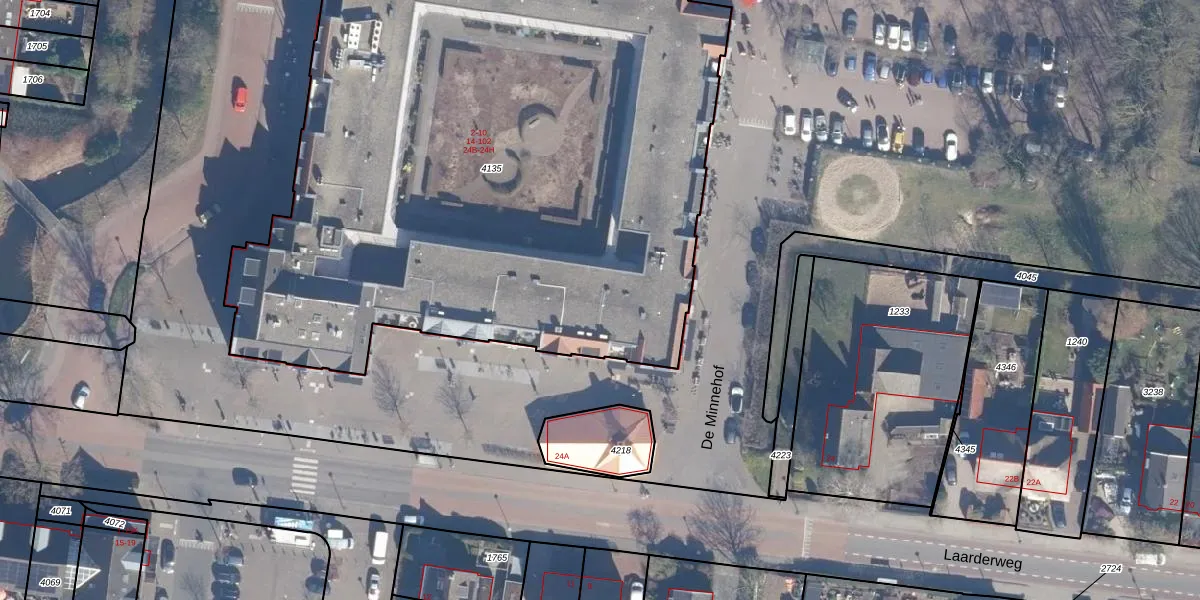 Laarderweg 24-B is gelegen op kadastraal perceel ENS00A4135. Deze kadastrale aanduiding is uniek en wordt gebruikt door het Kadaster om eigendomsrechten en andere zakelijke rechten vast te leggen. Het perceel maakt onderdeel uit van de kadastrale gemeente Eemnes.