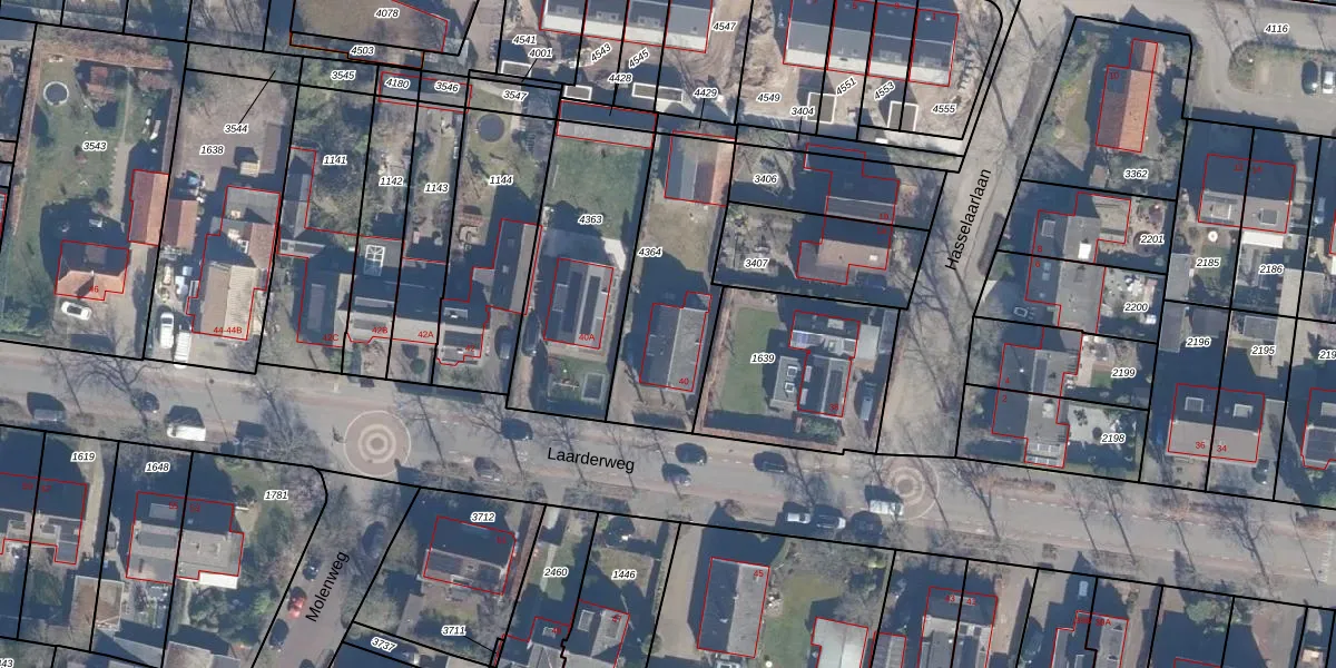 Het perceel waarop Laarderweg 40 staat heeft een oppervlakte van 567 m². Dit is een groot perceel. De perceeloppervlakte wordt geregistreerd door het Kadaster. Gedetailleerde informatie over de maten van dit perceel kunt u vinden in het rapport Kadastrale kaart met maatvoering van Laarderweg 40.
