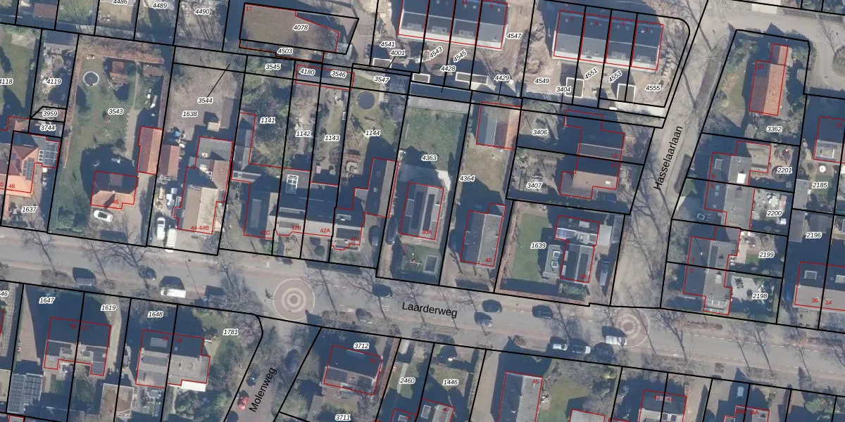 Het perceel waarop Laarderweg 40-A staat heeft een oppervlakte van 657 m². Dit is een groot perceel. De perceeloppervlakte wordt geregistreerd door het Kadaster. Gedetailleerde informatie over de maten van dit perceel kunt u vinden in het rapport Kadastrale kaart met maatvoering van Laarderweg 40-A.
