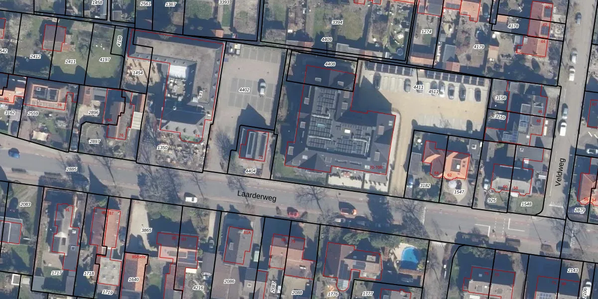 Het perceel waarop Laarderweg 70-J staat heeft een oppervlakte van 2193 m². Dit is een zeer groot perceel. De perceeloppervlakte wordt geregistreerd door het Kadaster. Gedetailleerde informatie over de maten van dit perceel kunt u vinden in het rapport Kadastrale kaart met maatvoering van Laarderweg 70-J.