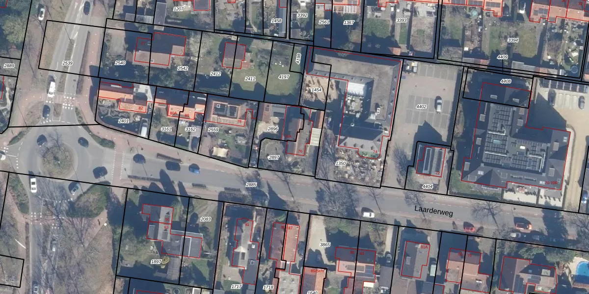 Laarderweg 76 is gelegen op kadastraal perceel ENS00A2897. Deze kadastrale aanduiding is uniek en wordt gebruikt door het Kadaster om eigendomsrechten en andere zakelijke rechten vast te leggen. Het perceel maakt onderdeel uit van de kadastrale gemeente Eemnes.