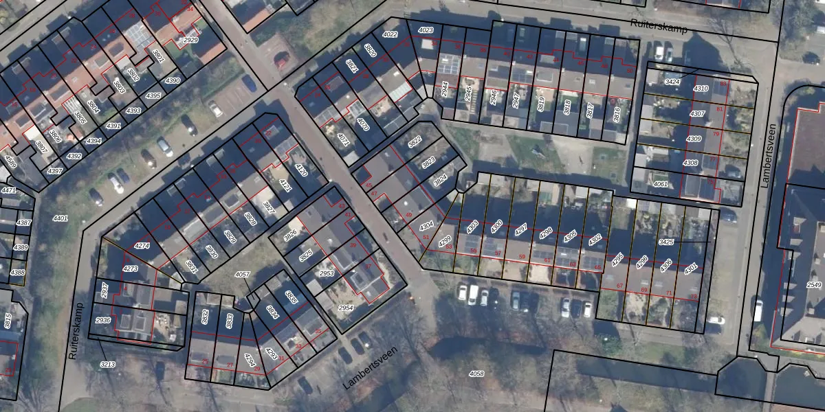Lambertsveen 49 is gelegen op kadastraal perceel ENS00A3824. Deze kadastrale aanduiding is uniek en wordt gebruikt door het Kadaster om eigendomsrechten en andere zakelijke rechten vast te leggen. Het perceel maakt onderdeel uit van de kadastrale gemeente Eemnes.