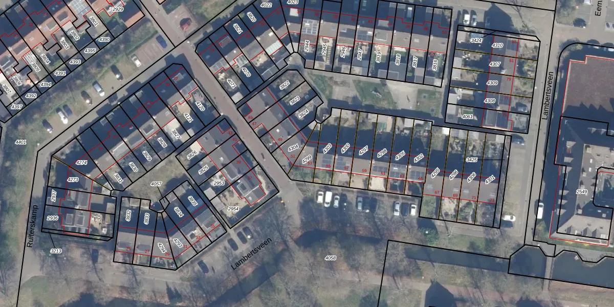 Lambertsveen 53 is gelegen op kadastraal perceel ENS00A4299. Deze kadastrale aanduiding is uniek en wordt gebruikt door het Kadaster om eigendomsrechten en andere zakelijke rechten vast te leggen. Het perceel maakt onderdeel uit van de kadastrale gemeente Eemnes.