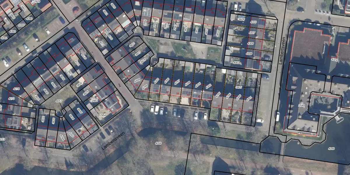 Lambertsveen 59 is gelegen op kadastraal perceel ENS00A4297. Deze kadastrale aanduiding is uniek en wordt gebruikt door het Kadaster om eigendomsrechten en andere zakelijke rechten vast te leggen. Het perceel maakt onderdeel uit van de kadastrale gemeente Eemnes.