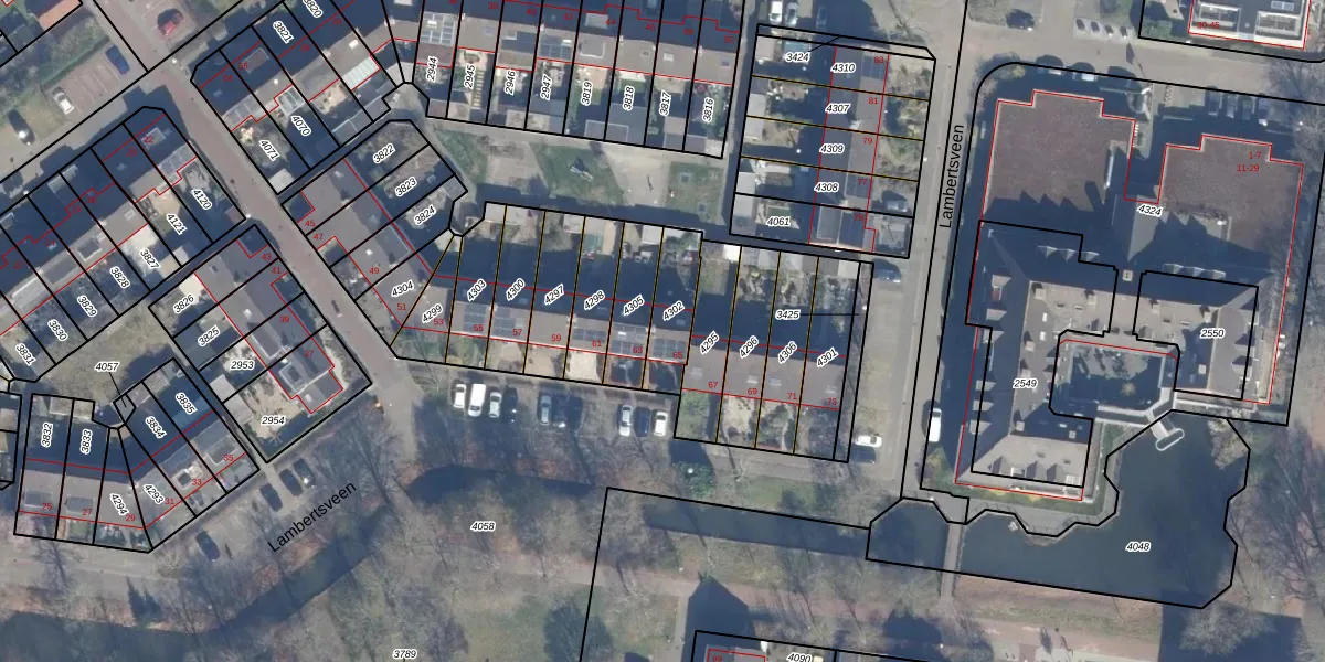 Lambertsveen 65 is gelegen op kadastraal perceel ENS00A4302. Deze kadastrale aanduiding is uniek en wordt gebruikt door het Kadaster om eigendomsrechten en andere zakelijke rechten vast te leggen. Het perceel maakt onderdeel uit van de kadastrale gemeente Eemnes.