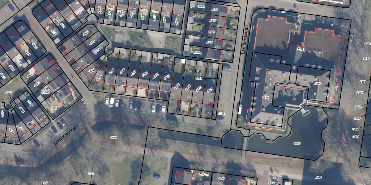 Lambertsveen 69 is gelegen op kadastraal perceel ENS00A4296. Deze kadastrale aanduiding is uniek en wordt gebruikt door het Kadaster om eigendomsrechten en andere zakelijke rechten vast te leggen. Het perceel maakt onderdeel uit van de kadastrale gemeente Eemnes.