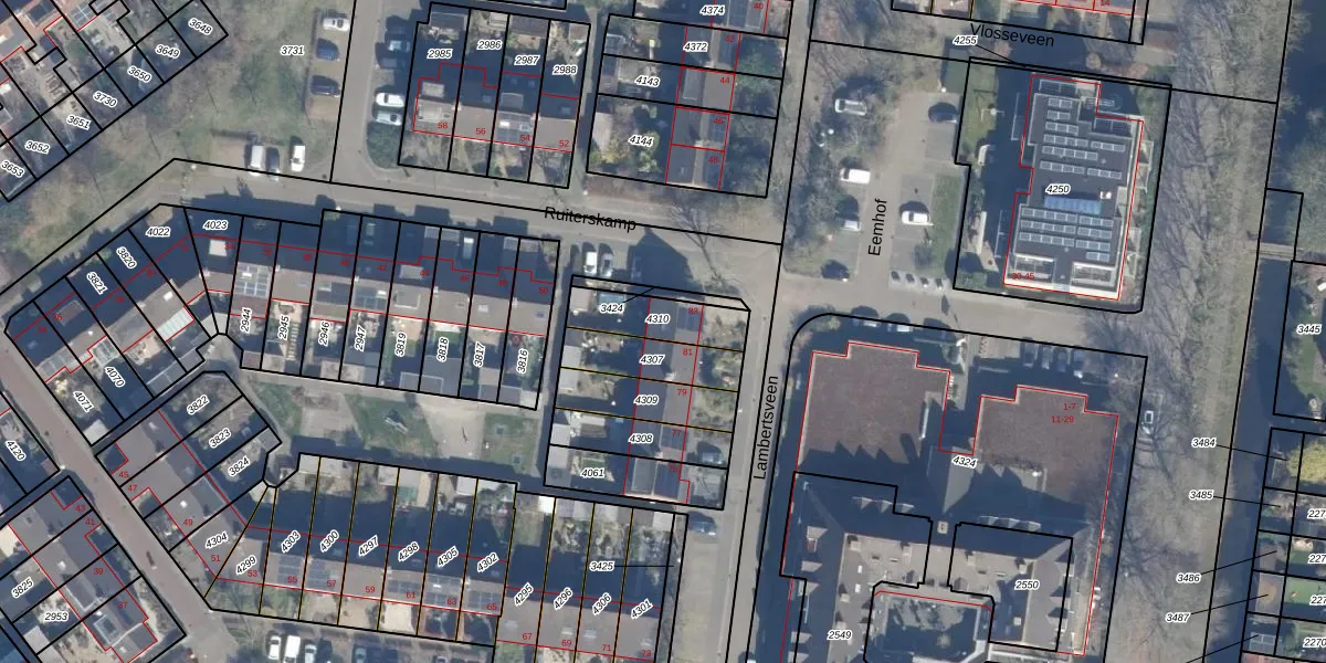 Lambertsveen 83 is gelegen op kadastraal perceel ENS00A4310. Deze kadastrale aanduiding is uniek en wordt gebruikt door het Kadaster om eigendomsrechten en andere zakelijke rechten vast te leggen. Het perceel maakt onderdeel uit van de kadastrale gemeente Eemnes.