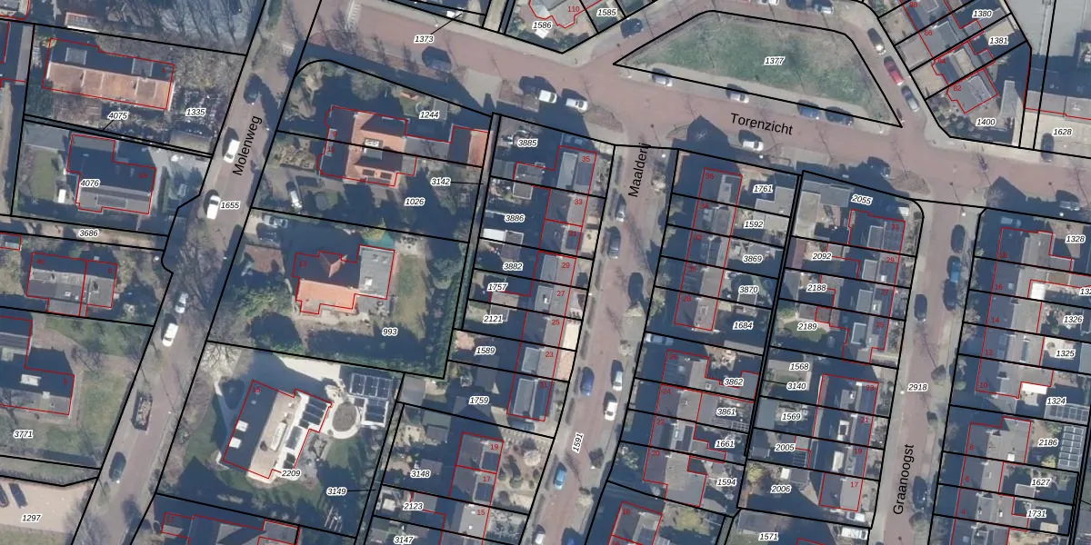 Het perceel waarop Maalderij 29 staat heeft een oppervlakte van 120 m². Dit is een middelgroot perceel. De perceeloppervlakte wordt geregistreerd door het Kadaster. Gedetailleerde informatie over de maten van dit perceel kunt u vinden in het rapport Kadastrale kaart met maatvoering van Maalderij 29.