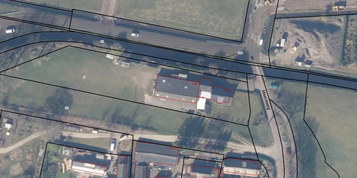 Het perceel waarop Meentweg 129-B staat heeft een oppervlakte van 2925 m². Dit is een zeer groot perceel. De perceeloppervlakte wordt geregistreerd door het Kadaster. Gedetailleerde informatie over de maten van dit perceel kunt u vinden in het rapport Kadastrale kaart met maatvoering van Meentweg 129-B.