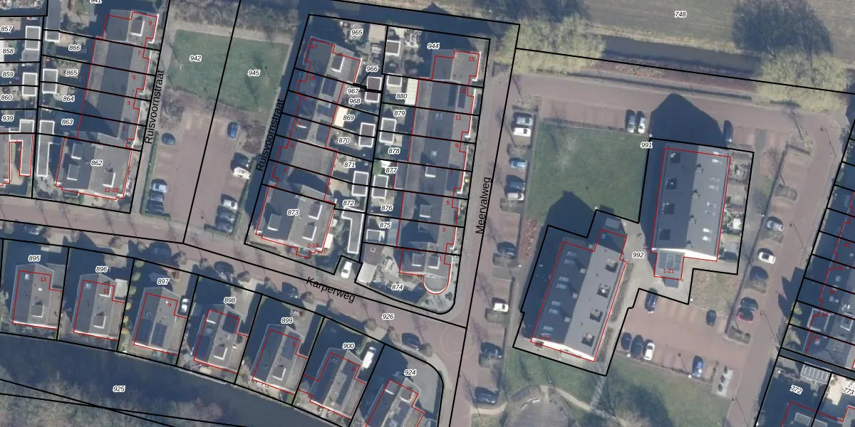 Meervalweg 5 is gelegen op kadastraal perceel ENS00K876. Deze kadastrale aanduiding is uniek en wordt gebruikt door het Kadaster om eigendomsrechten en andere zakelijke rechten vast te leggen. Het perceel maakt onderdeel uit van de kadastrale gemeente Eemnes.