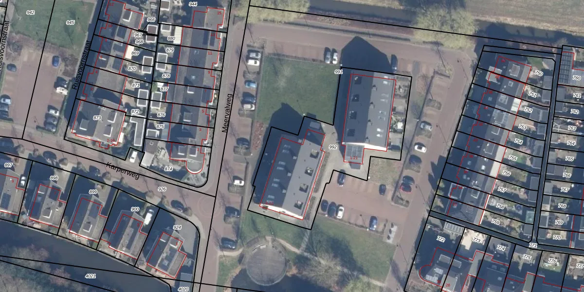 Meervalweg 8 is gelegen op kadastraal perceel ENS00K992. Deze kadastrale aanduiding is uniek en wordt gebruikt door het Kadaster om eigendomsrechten en andere zakelijke rechten vast te leggen. Het perceel maakt onderdeel uit van de kadastrale gemeente Eemnes.