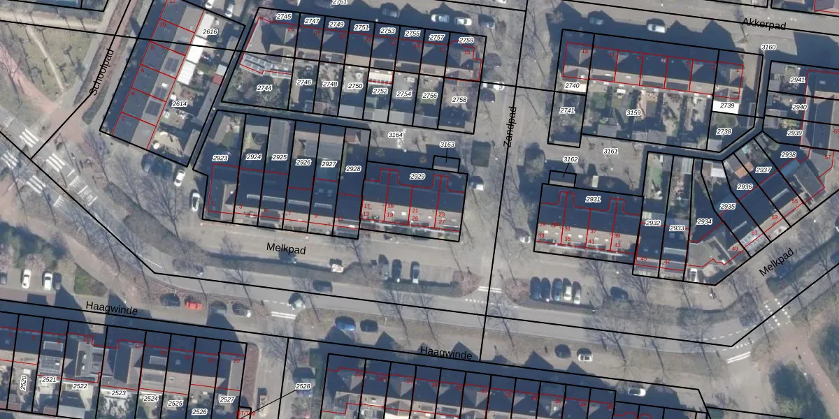 Het perceel waarop Melkpad 25 staat heeft een oppervlakte van 394 m². Dit is een groot perceel. De perceeloppervlakte wordt geregistreerd door het Kadaster. Gedetailleerde informatie over de maten van dit perceel kunt u vinden in het rapport Kadastrale kaart met maatvoering van Melkpad 25.