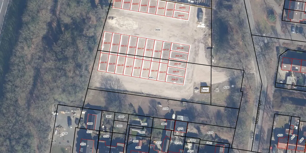 Het perceel waarop Noordersingel 26-A-24 staat heeft een oppervlakte van 1989 m². Dit is een zeer groot perceel. De perceeloppervlakte wordt geregistreerd door het Kadaster. Gedetailleerde informatie over de maten van dit perceel kunt u vinden in het rapport Kadastrale kaart met maatvoering van Noordersingel 26-A-24.