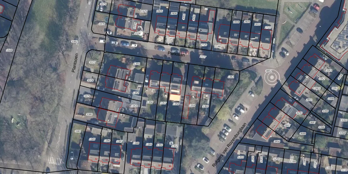 Het perceel waarop Parklaan 7 staat heeft een oppervlakte van 318 m². Dit is een groot perceel. De perceeloppervlakte wordt geregistreerd door het Kadaster. Gedetailleerde informatie over de maten van dit perceel kunt u vinden in het rapport Kadastrale kaart met maatvoering van Parklaan 7.