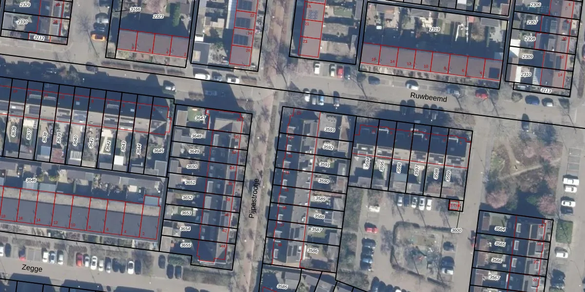 Gebruik de zoekbalk of klik op een perceel voor informatie over de adressen binnen dit perceel.