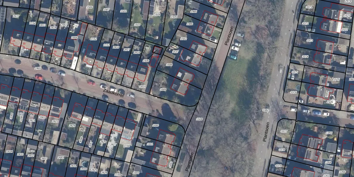 Gebruik de zoekbalk of klik op een perceel voor informatie over de adressen binnen dit perceel.