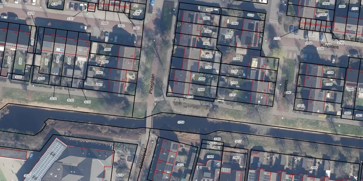 Het perceel waarop Ploeglaan 16 staat heeft een oppervlakte van 181 m². Dit is een middelgroot perceel. De perceeloppervlakte wordt geregistreerd door het Kadaster. Gedetailleerde informatie over de maten van dit perceel kunt u vinden in het rapport Kadastrale kaart met maatvoering van Ploeglaan 16.