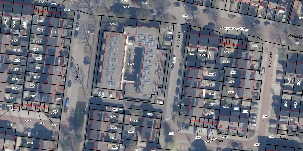 Het perceel waarop Ploeglaan 2-A-24 staat heeft een oppervlakte van 1895 m². Dit is een zeer groot perceel. De perceeloppervlakte wordt geregistreerd door het Kadaster. Gedetailleerde informatie over de maten van dit perceel kunt u vinden in het rapport Kadastrale kaart met maatvoering van Ploeglaan 2-A-24.
