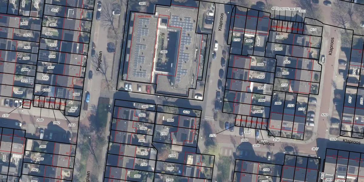 Het perceel waarop Ploeglaan 2-A-25 staat heeft een oppervlakte van 1895 m². Dit is een zeer groot perceel. De perceeloppervlakte wordt geregistreerd door het Kadaster. Gedetailleerde informatie over de maten van dit perceel kunt u vinden in het rapport Kadastrale kaart met maatvoering van Ploeglaan 2-A-25.