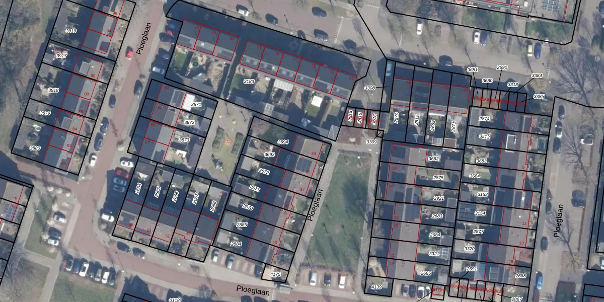 Het perceel waarop Ploeglaan 33 staat heeft een oppervlakte van 178 m². Dit is een middelgroot perceel. De perceeloppervlakte wordt geregistreerd door het Kadaster. Gedetailleerde informatie over de maten van dit perceel kunt u vinden in het rapport Kadastrale kaart met maatvoering van Ploeglaan 33.