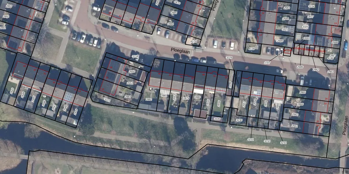Het perceel waarop Ploeglaan 42 staat heeft een oppervlakte van 187 m². Dit is een middelgroot perceel. De perceeloppervlakte wordt geregistreerd door het Kadaster. Gedetailleerde informatie over de maten van dit perceel kunt u vinden in het rapport Kadastrale kaart met maatvoering van Ploeglaan 42.